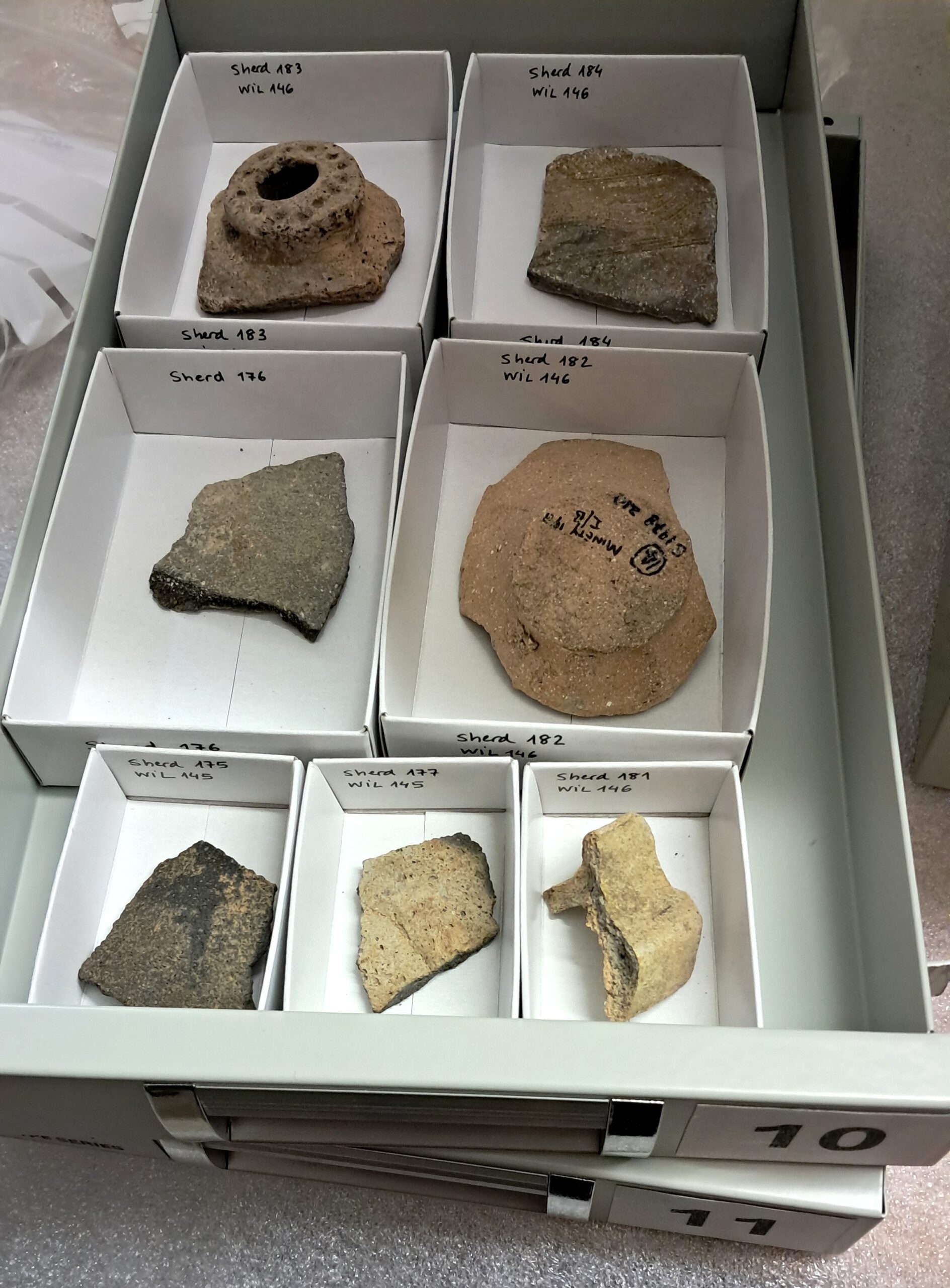 The type series consists of sample sherds of pottery found (but not necessarily made) within the county, and an accompanying database with descriptions of wares and fabrics. It includes, for example, Saxon handmade wares, medieval Laverstock wares from the Salisbury area and post-medieval slip-decorated earthenwares made in Crockerton